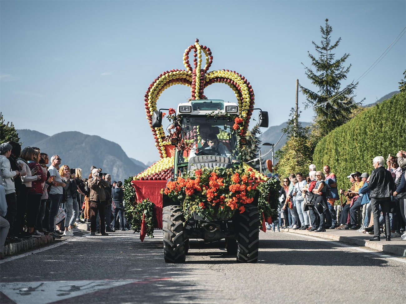 Um 14.00 Uhr großer Erntedankumzug durch das Dorf mit Musikkapellen, geschmückten Festwagen, der Festkutsche mit den Ehrengästen, der amtierenden und der ungekrönten Apfelkönigin und dem Festwagen mit der Apfelkrone. Nach den Grußworten erfolgt die Krönung der XXXI. Apfelkönigin durch unsere Ehrengäste sowie der traditionelle Strudelanschnitt. Anschließend musikalische Unterhaltung, Spiele und Spass für die Kinder und auf dem Bauermarkt werden zahlreiche heimische Produkte angeboten. Für Speis und Trank rund um das Apfelfest ist bestens gesorgt.