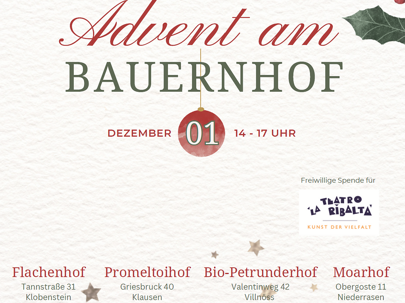 Advent am Bauernhof am Sonntag, 1. Dezember. Schule am Bauernhof-Betriebe öffnen ihre Tore. Auch der Bio-Petrunderhof macht mit.