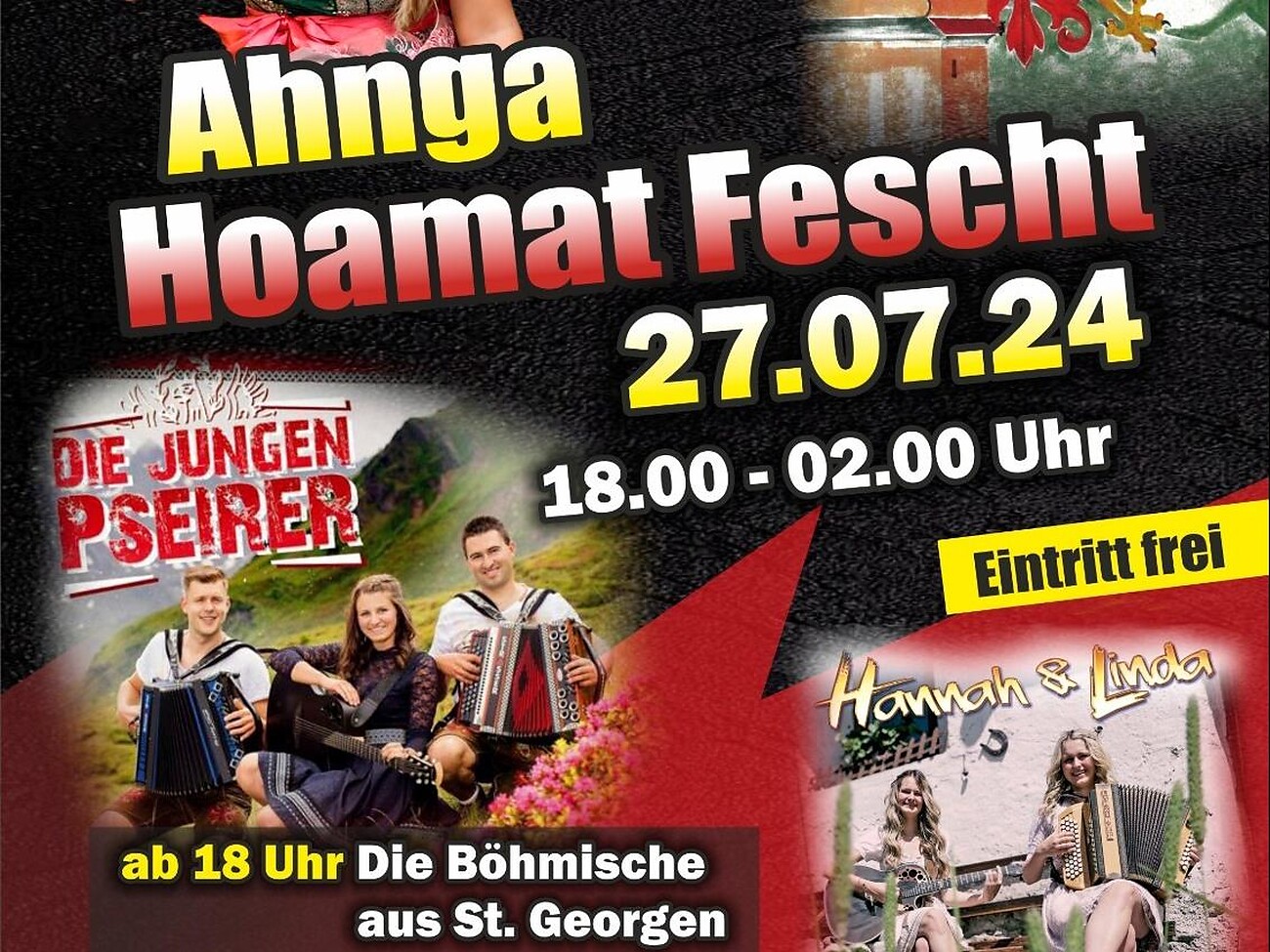 "Hoamat" Fest der Schützenkompanie in St. Johann mit Live Musik. Es spielen die "Böhmische aus St. Georgen", "Hannah und Linda" und die jungen Pseirer
