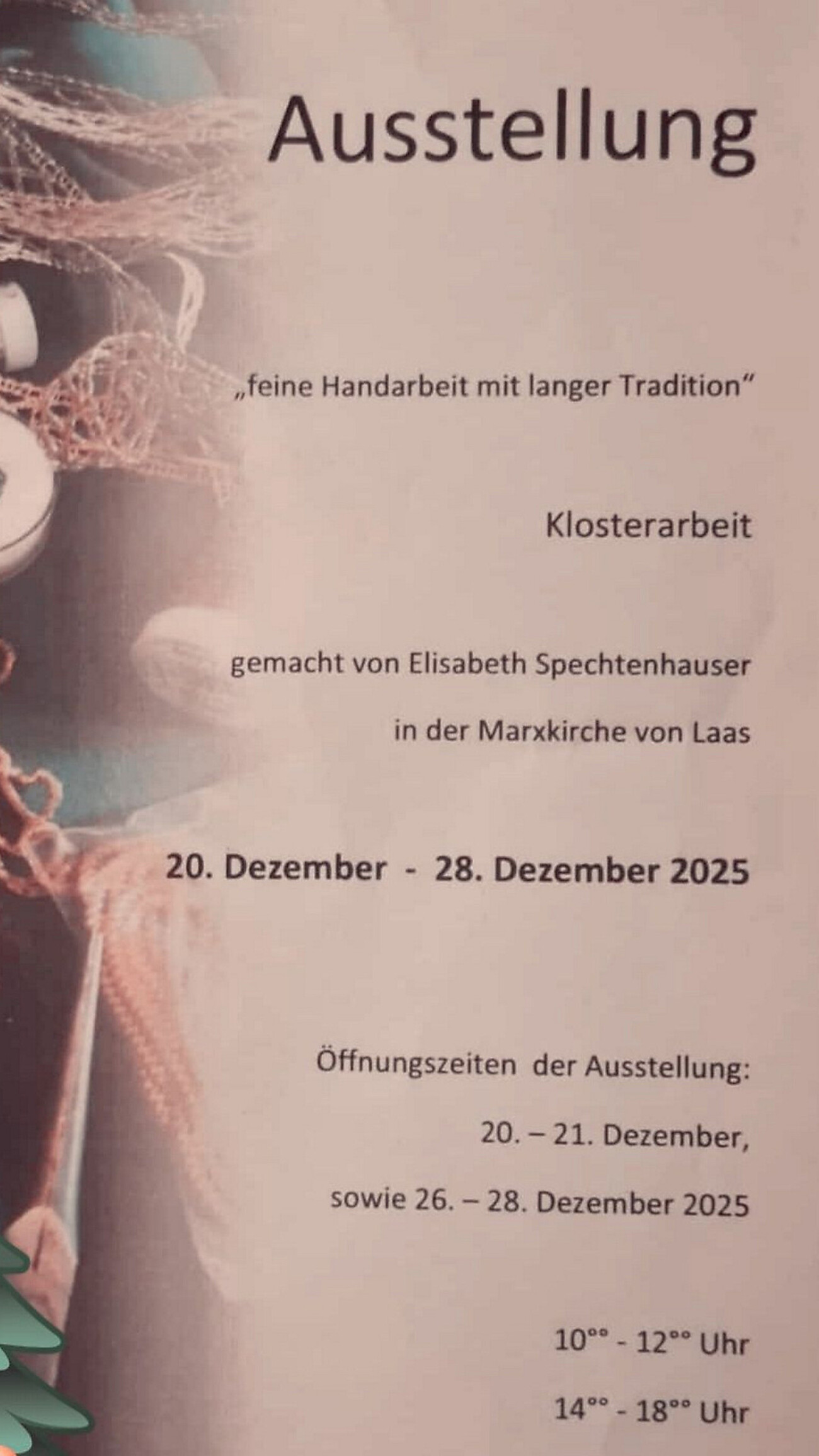 Feine Handarbeit mit langer Traditon - Klosterarbeit gemacht von Elisabeth Spechtenhauser.