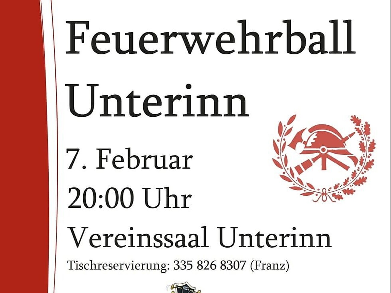 Stimmungsvolle, gut besuchte Tradition mit Musik, Ballkönigin & einer vielfältigen Speisekarte im Vereinshaus Unterinn ab 20 Uhr.