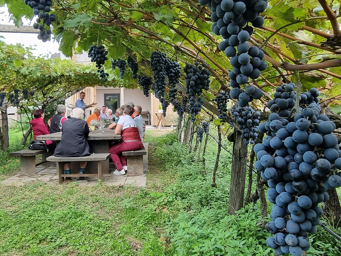 Wir erkunden im Weingarten mit Bio-Winzer Othmar den seit 25 Jahren naturbelassenen Reben-Anbau ohne jeglichen Pflanzenschutz und ohne Traktor. Dann kosten wir im Schatten der Weinlaube die einzigartigen kreativen Köstlichkeiten von der Rebe, wie das Traubenblätter-Patè oder den Trauben-Kaviar (Traubenblüten-Knospen) und das erste OPC aus Südtirol in Begleitung der köstlichen Weine. Ein einzigartiges Erlebnis wartet auf dich. Mindestteilnehmer 6 Personen.