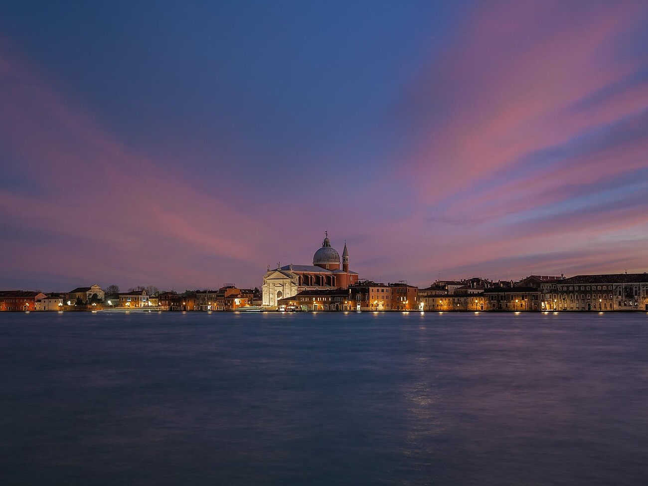 In Venedig kommen wir zu einer Zeit an, in der die großen Tagesbesuchermassen die Stadt bereits verlassen haben. Mit einem privaten Boot fahren wir gemeinsam durch den Giudecca-Kanal bis zur Uferpromenade in der Nähe des Markusplatzes.