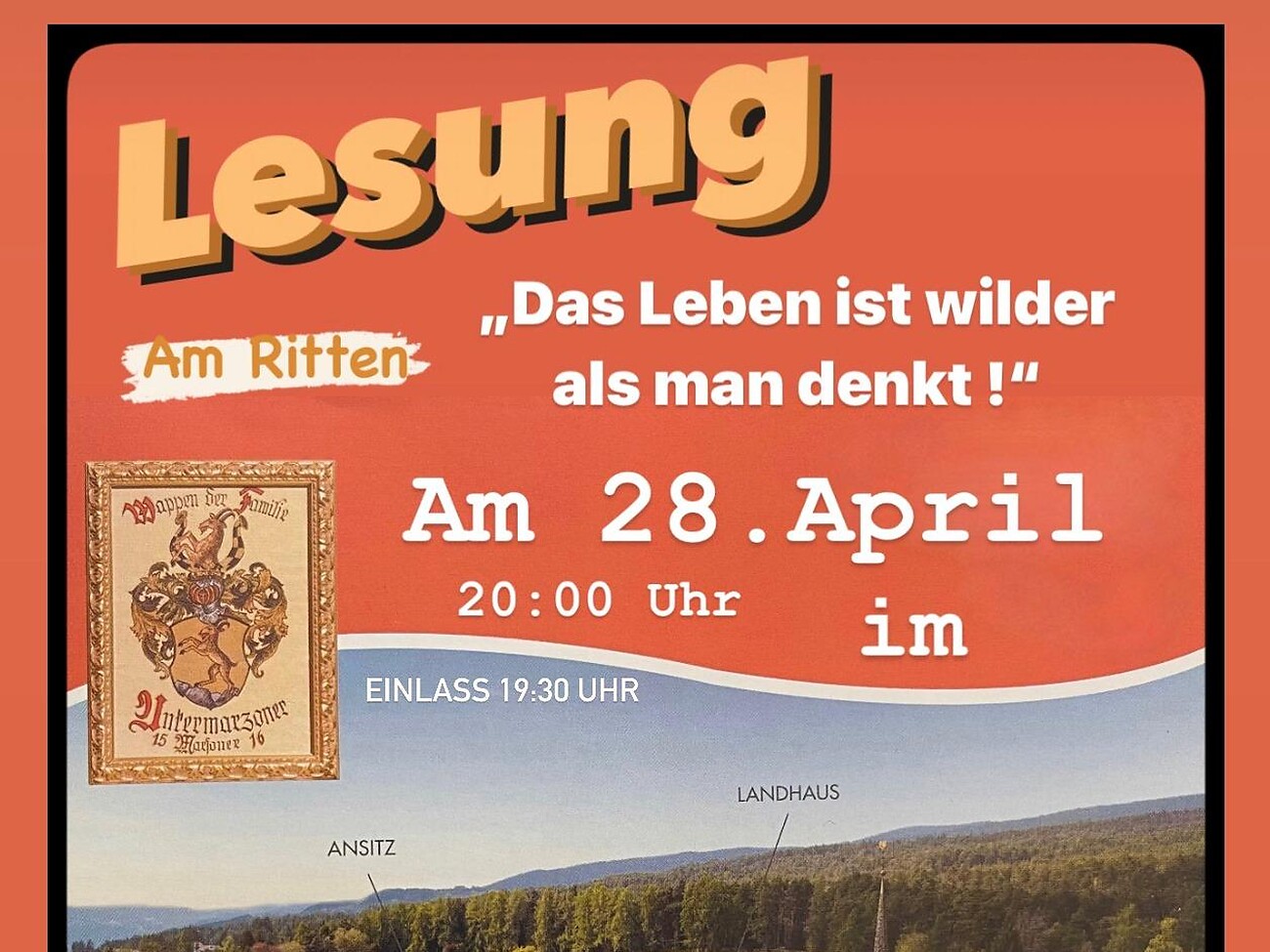 Lesung mit dem bekannten Schauspieler & Musiker Nick Wilder im Hotel Ansitz Kematen in Klobenstein ab 20 Uhr. Einlass: 19.30 Uhr. Ticketreservierung: Tel. +39 0471 356356, Preis: € 17.