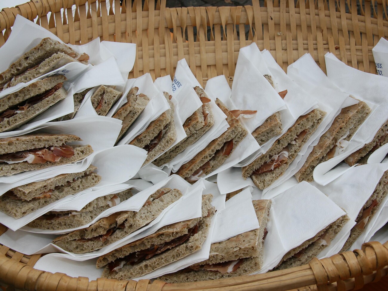 Anschließender Umtrunk mit Bauernbrot, Kuchen und Krapfen am Dorfplatz von Jenesien.