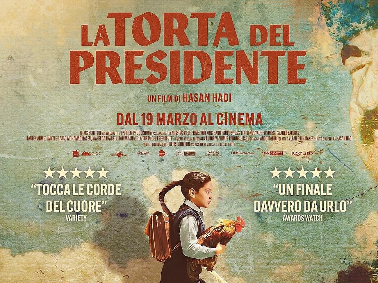 Mentre la popolazione dell’Iraq degli anni ’90 lotta per sopravvivere alla guerra e alla carestia, in tutte le scuole del Paese è obbligatorio preparare una torta per festeggiare il compleanno del Presidente Saddam Hussein. Nonostante le sue preghiere di non essere scelta, la piccola Lamia di 9 anni viene sorteggiata per questo ‘prestigioso’ compito. Giunta in città con la nonna, sfuggirà al suo controllo per cercare gli ingredienti necessari per la torta. Insieme al suo amico Saeed e al suo gallo andrà incontro a una serie di peripezie a volte avventurose a volte pericolose, ma anche buffe riuscendo alla fine – forse – nel suo intento.