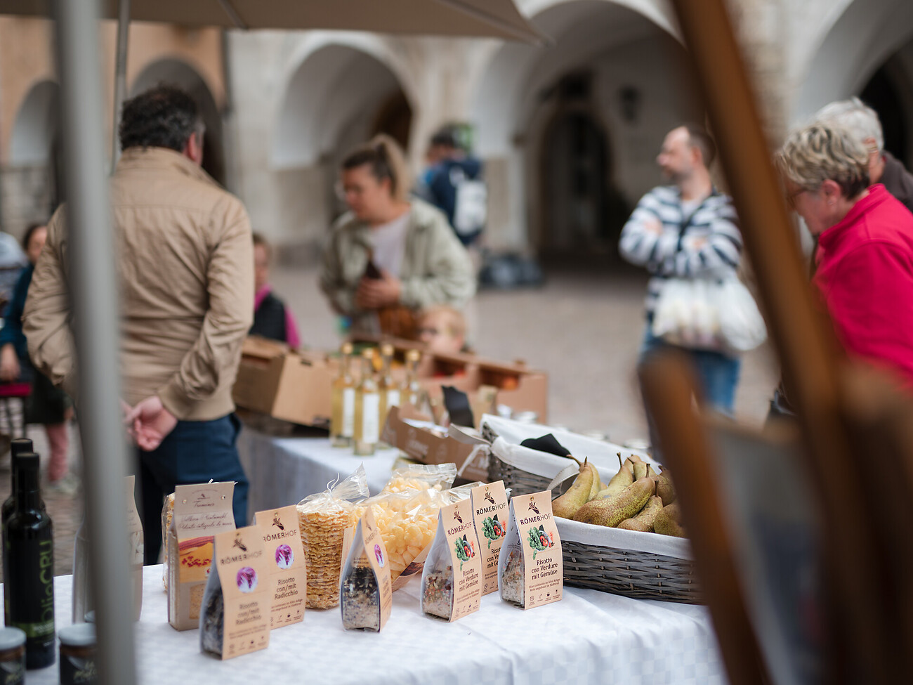 In der historischen Grafengasse genießen Besucher herbstliche Spezialitäten wie Kastanien, Polenta mit Gulasch, Spinatnocken, Strauben und weitere regionale Köstlichkeiten. Dazu gibt es Wein aus der Region sowie musikalische Unterhaltung in gemütlicher Atmosphäre.