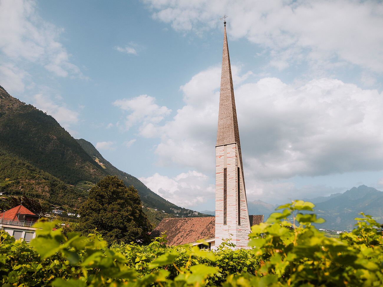 Festgottesdienst zu Ehren des hl. Johannes Nepomuk beim „Ansitz Mair im Korn“ in Algund, feierlich umrahmt vom Männerchor Algund.