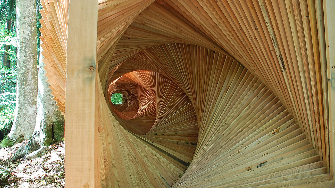 Der multimedial arbeitende Künstler hat gemeinsam mit der Kuratorin Eva von Ingram Harpf für den Dorfkern des Dolomitendorfes 7 Werke ausgewählt, die sich symbiotisch in das historische Zentrum einfügen. Aus natürlichen Elemente und Materialien geschaffen, werden die Werke sich im Laufe der Ausstellungszeit durch die Witterung geplant verändern.