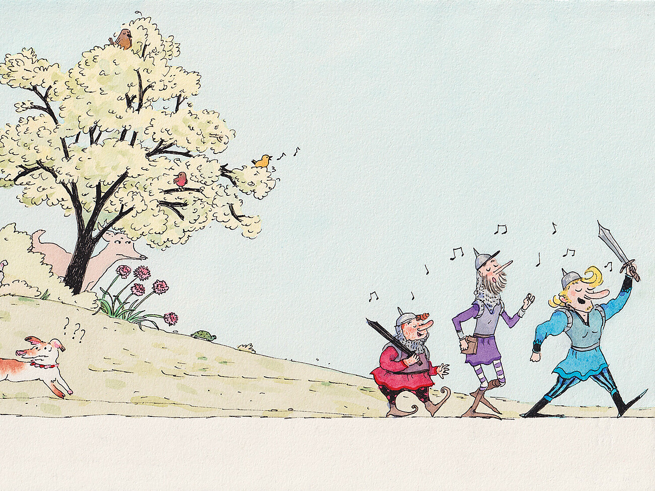 Ausgehend von der Lektüre Non c’è nessuno in questo bosco!, einem unveröffentlichten Leporello der Autorin, betreten wir einen Wald, in dem sich ein „schrecklicher Drache“ versteckt. Er ist da, bleibt aber für die drei umherziehende Ritter, die ihn erfolglos suchen, unsichtbar. Tatsächlich ist der Wald um sie herum voller Tiere und anderer Wesen, die alle unbemerkt bleiben.