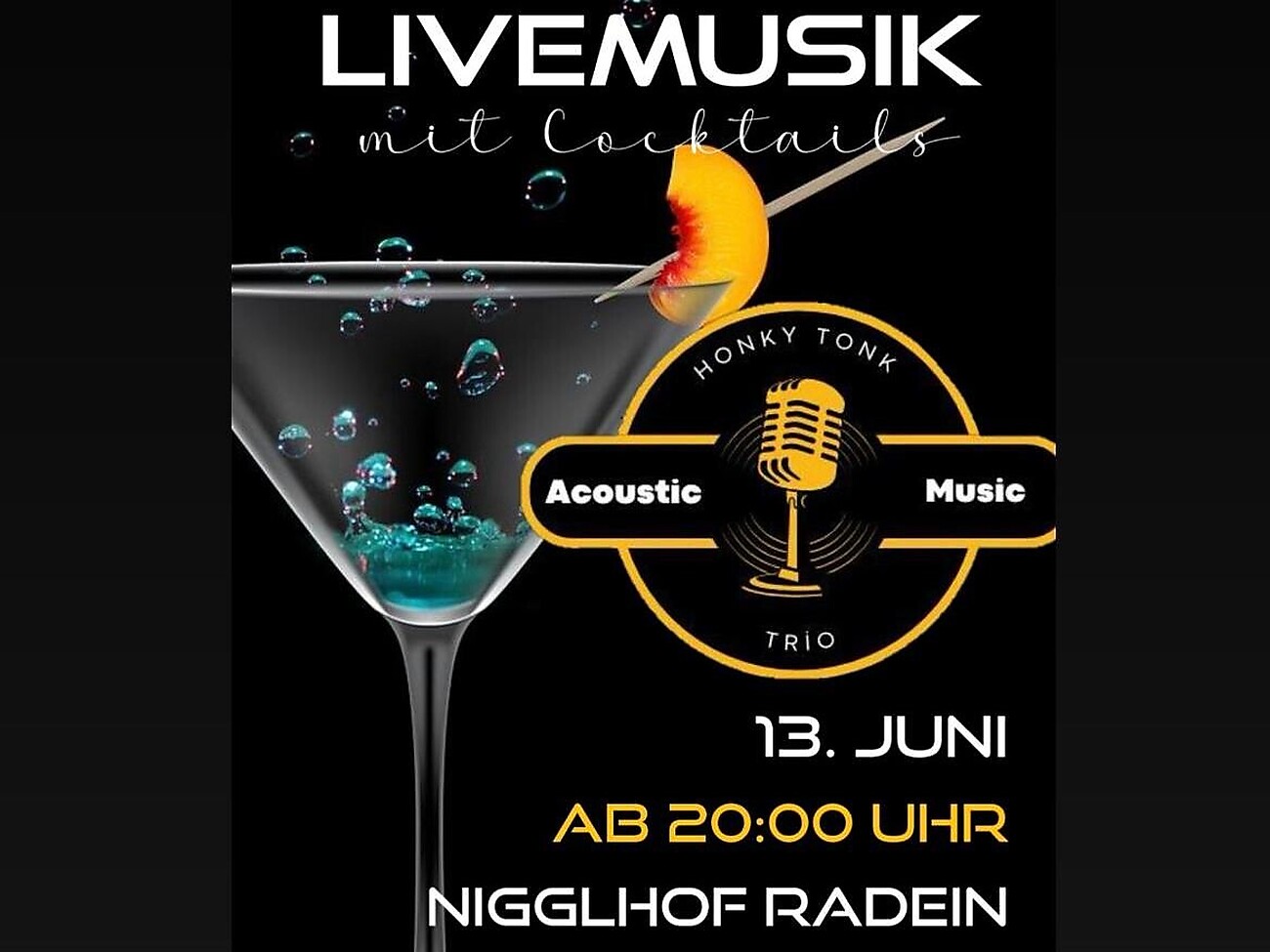 Der Nigglhof in Radein lädt zum Cocktailabend mit Livemusik vom Honky Tonk Trio mit Acoustic Music