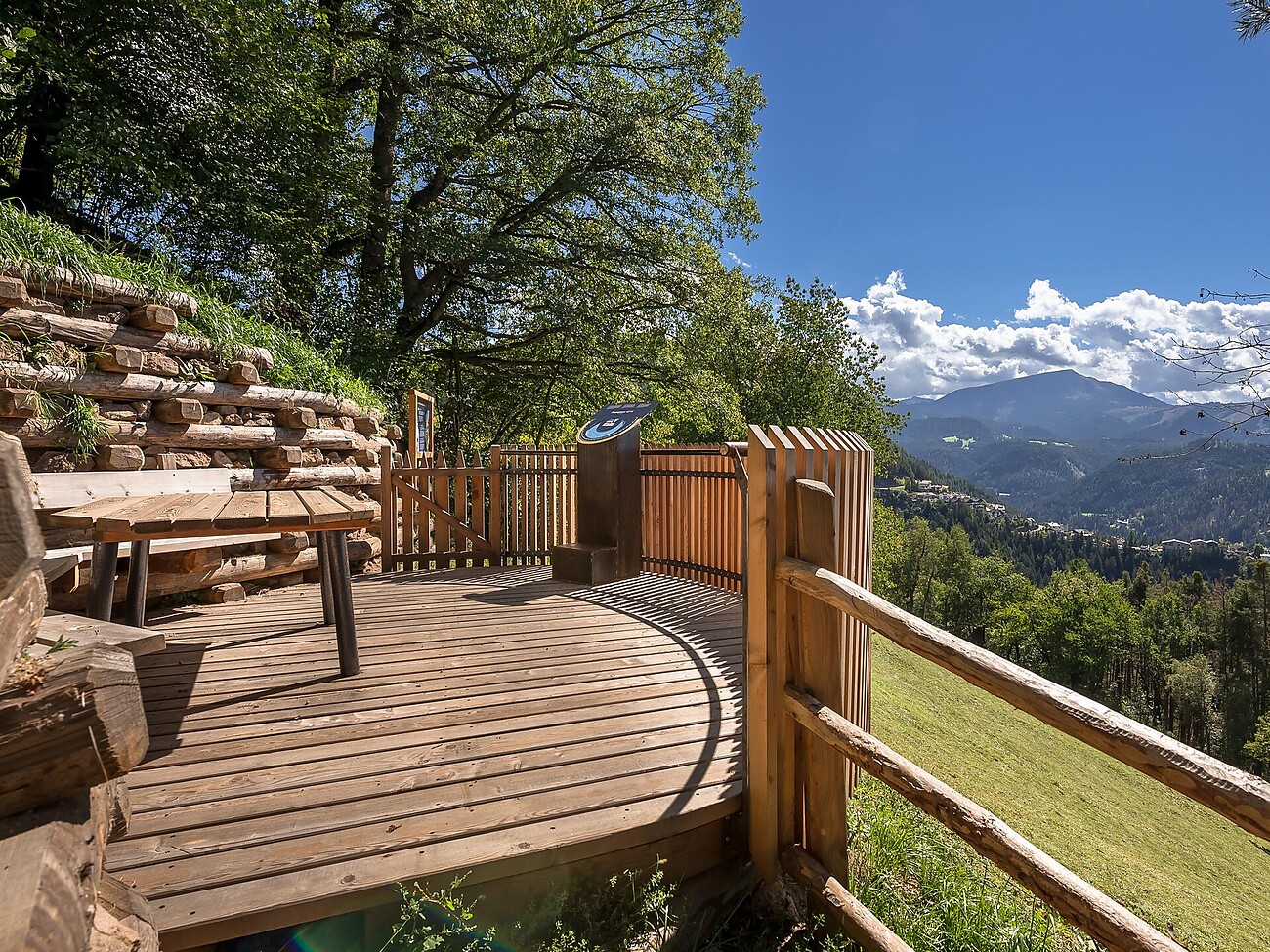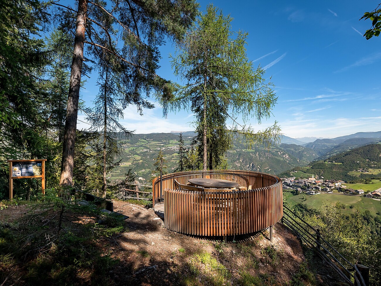 Dieser verläuft zwischen den beiden Sternendörfern Steinegg und Gummer – und wir begehen ihn in umgekehrter Richtung. Begleitet von unserem sympathischen Maskottchen Luxi entdecken wir entlang des Weges interaktive Stationen, die mit spannenden Einblicken ins Universum aufwarten. Immer wieder öffnen sich dabei wunderschöne Ausblicke auf die umliegenden Dolomiten. Der Weg führt uns über Wiesen, durch lichte Waldstücke und sanftes Hügelland mit viel Wissenswertem für Groß und Klein.
