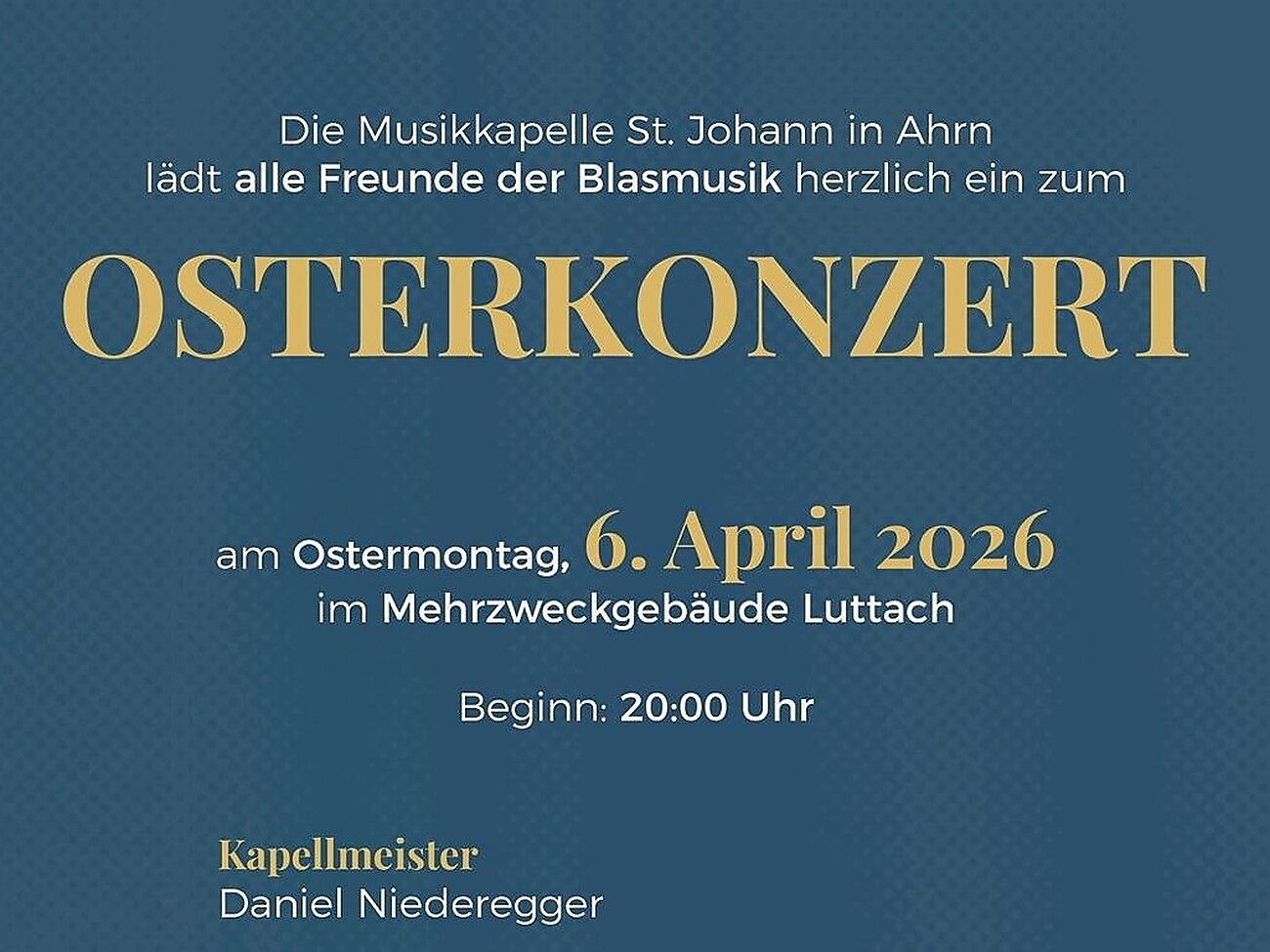 Die Musikkapelle St. Johann in Ahrn lädt herzlich ein zum Osterkonzert