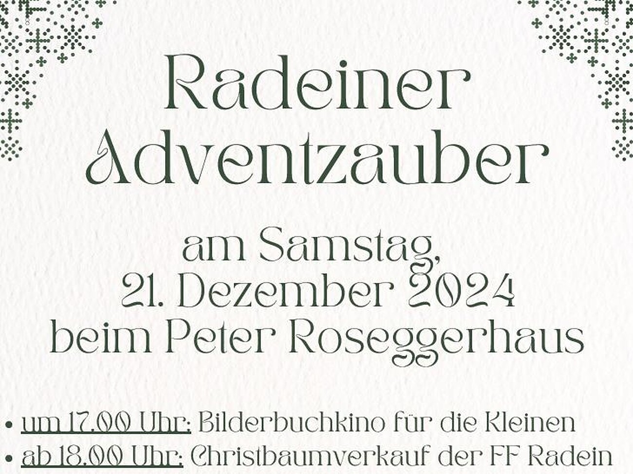 ab 18.00 Uhr Christbaumverkauf der Freiwilligen Feuerwehr Radein