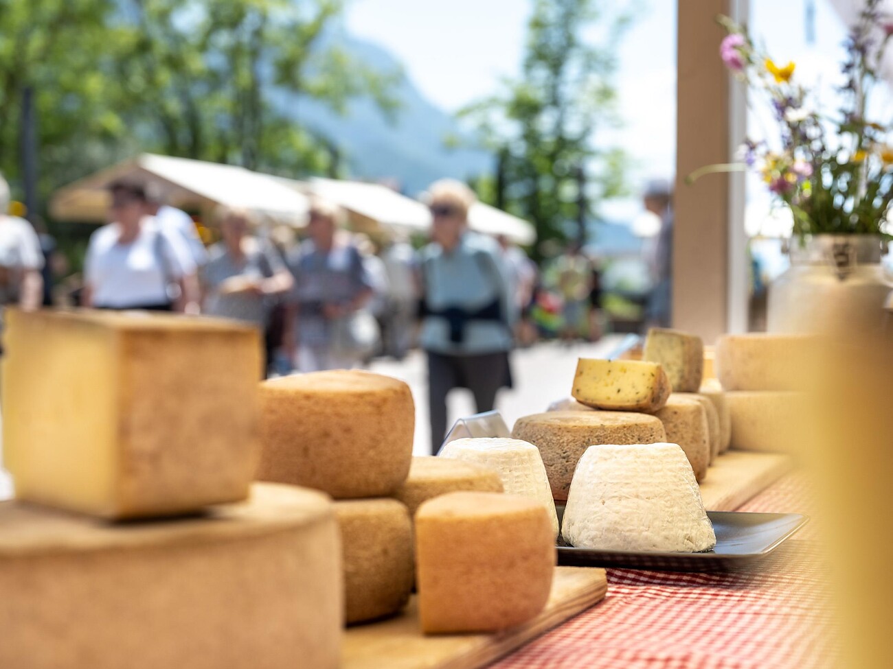 Beim Schenner Dorfmarktl auf dem Raiffeisenplatz bieten die Aussteller ihre hofeigenen Produkte (Käse, Wein, Honig, Krapfen u.a.) zur Verkostung sowie lokales Kunsthandwerk zum Verkauf an.