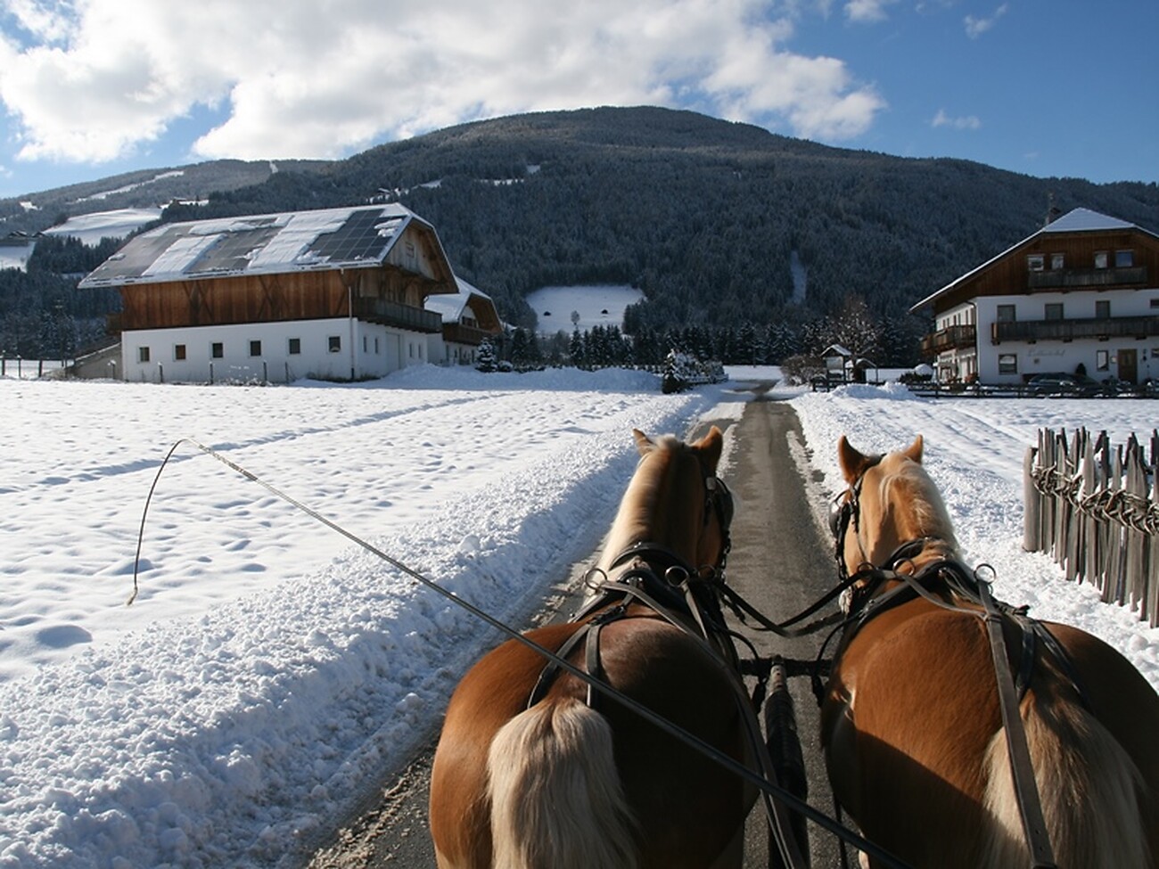 Gemütlich eingehüllt in warmen Decken wird eine Pferdekutschfahrt garantiert zu einem unvergesslichen Erlebnis. Die Vierbeiner traben dampfend durch die verschneite Winterlandschaft Olangs. Genießen sie die kristallklare Luft, die Lust auf erholsame Wintertage macht (begrenzte Teilnehmerzahl - max. 6 pro Fahrt).