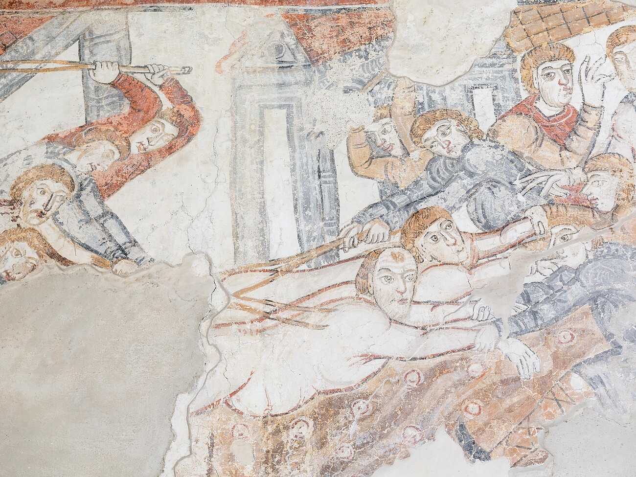 Die kleine St. Benedikt-Kirche aus dem 8. Jh. n. Chr. birgt in ihrem Inneren karolingische Wandmalereien, die zu den ältesten Fresken Westeuropas zählen.