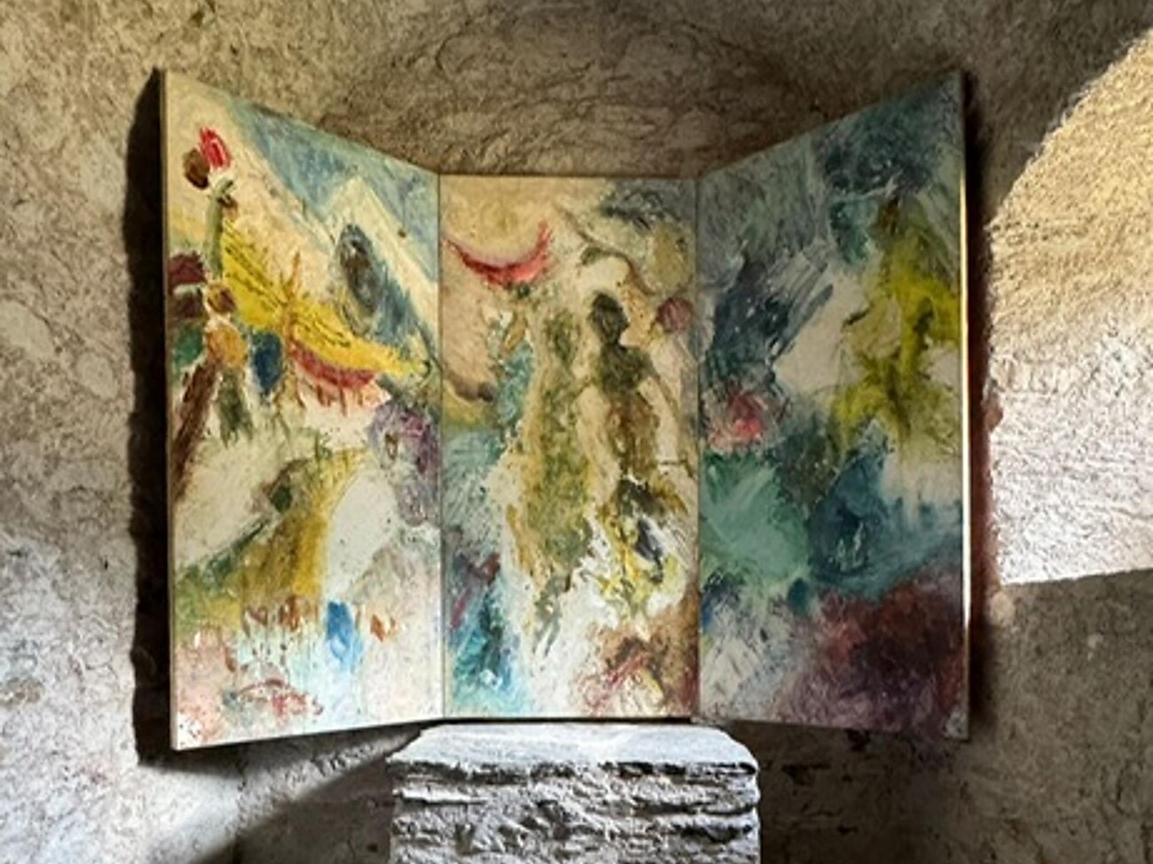 In der St. Sisinius Kirche kannst Du ab sofort das Triptychon „Genesis“ von Jörg Hofer bestaunen. Nach 47 Jahren sind die drei Flügel im August 2024 dauerhaft an ihren ursprünglichen Platz zurückgekehrt.