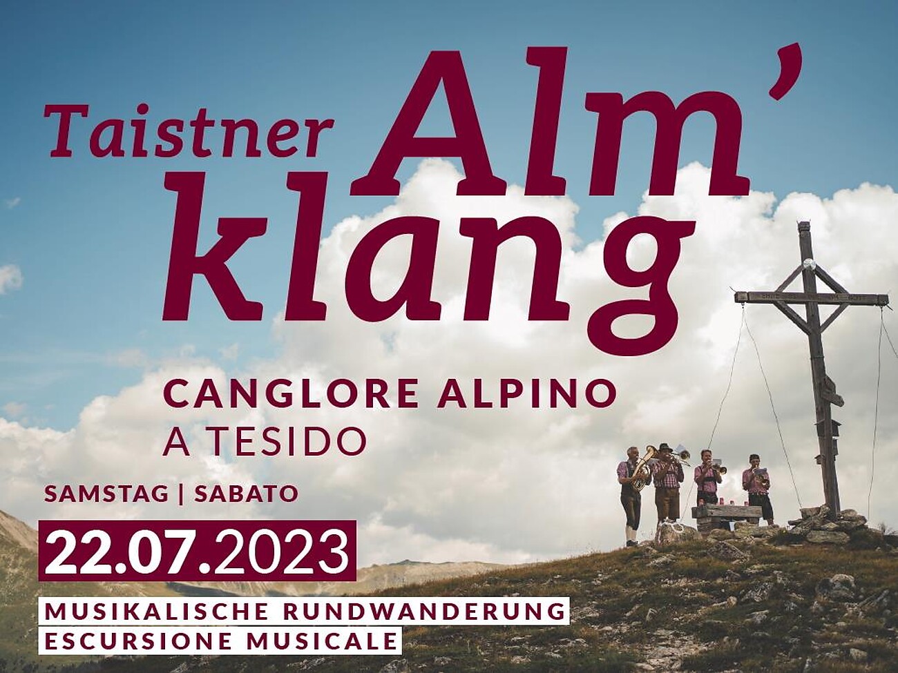 Musikalische Rundwanderung. Ab 11.00 Uhr musizieren kleine Ensembles der Musikkapelle Taisten entlang des Wanderweges Nr. 31. Ausgangspunkt: Parkplatz oberhalb Mudler in Taisten. Bei schlechter Witterung entfällt die Veranstaltung.