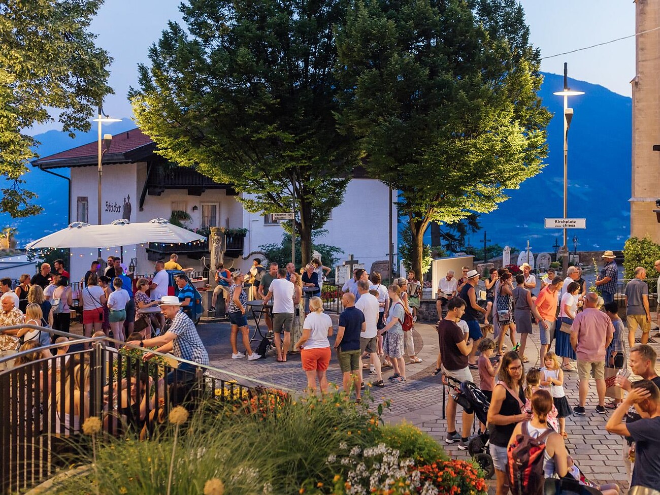 Im Juli und August öffnen Dorf Tirols Geschäfte jeden Montag von 20 bis 22 Uhr ihre Türen und laden zum Abendshopping über den Dächern und Lichtern von Meran. Begleitet wird der nächtliche Einkaufsbummel von einem bunten Rahmenprogramm für Groß und Klein, musikalischer Unterhaltung und allerlei Köstlichem aus heimischen Küchen und Kellern.