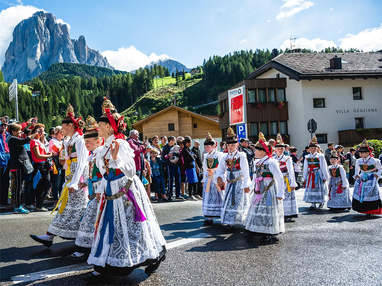 Am Sonntag um 16:00 Uhr findet der Umzug "Die Trachten der ladinischen Täler" durchs Zentrum von St. Christina statt, mit Start auf dem Gemeindeplatz. Während des Umzuges werden die Grödner Trachten, die Trachten des Gadertales, Fassatales, Buchenstein und Ampezzo präsentiert.