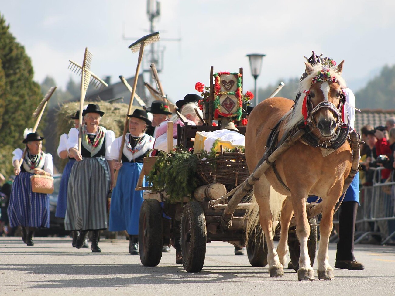 Zurück ins Tal heißt es im Oktober für die Rinder, Pferde, Ziegen und Schafe, die den Sommer auf der Seiser Alm verbracht haben. Auf der Seiser Alm feiert man den Almabtrieb traditionell am Rosari-Samstag, dem Samstag vor Erntedank. In diesem Jahr fällt der Almabtrieb von der Seiser Alm auf den 03. Oktober 2026. Mit Blumenkränzen und Glockengeläut geschmückte Kühe bevölkern ab 10.30 Uhr die Straßen bei Compatsch. Die bunte Herde aus rund 250 Rindern, Schafen, Pferden und Ziegen sowie Plunderfuhren macht sich dann gegen Mittag auf den Weg ins Tal. Begleitet wird der Almabtrieb von einem Fest in Compatsch ab 10.00 Uhr.
