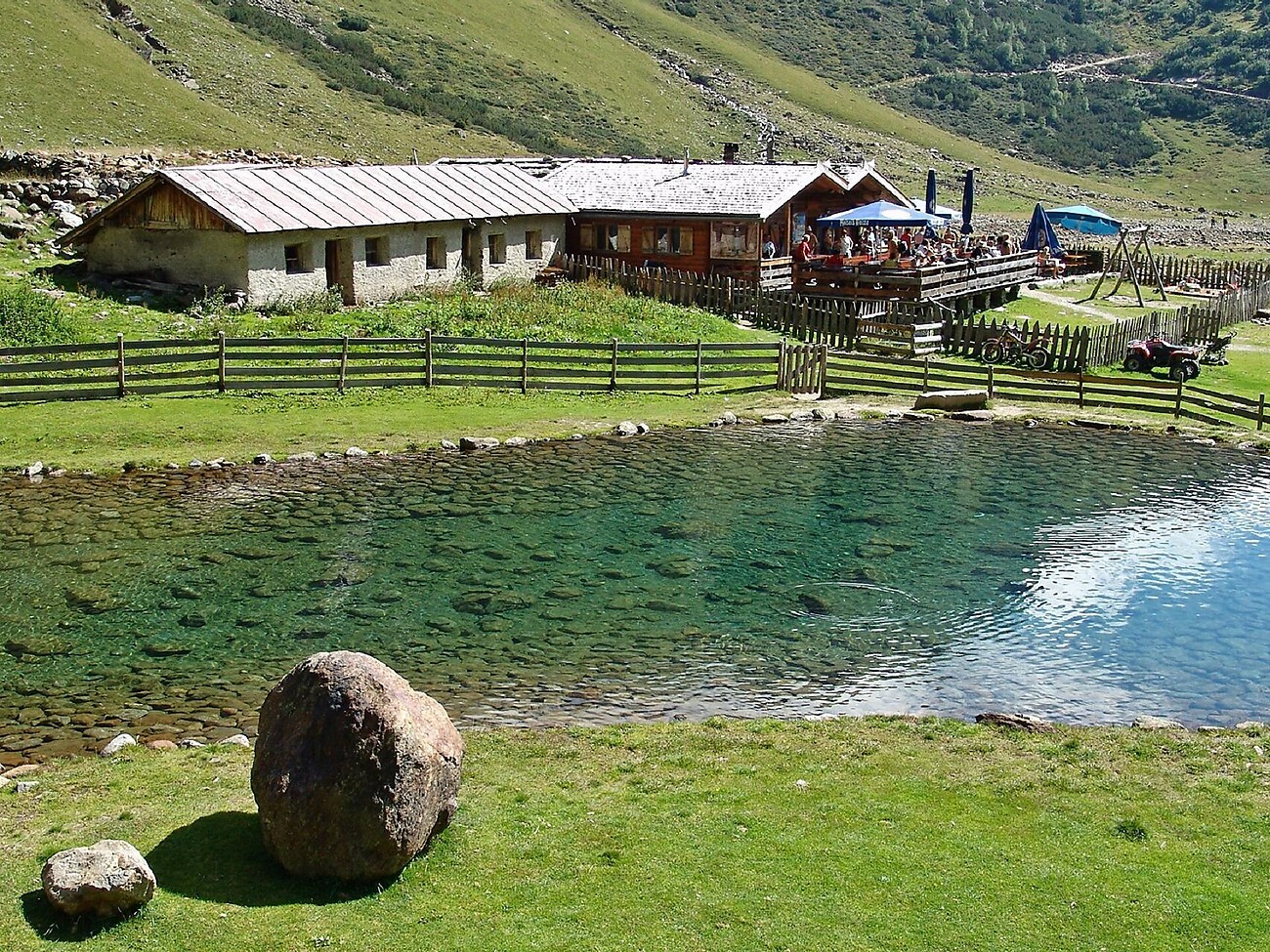 Hüttentipp: frische Forellen, ganztätig warme Küche, große Sonnenterrasse