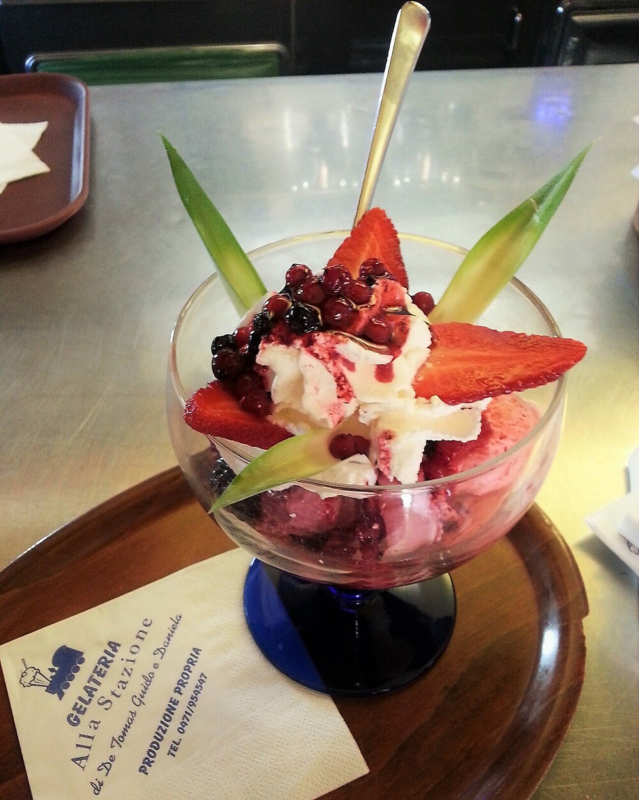 …eine kleine Oase zwischen den Feldern im Südtiroler Unterland, nur 15 Gehminuten vom Stadtzentrum Leifers entfernt. Die Eisdiele ist mit dem Auto oder auch mit dem Fahrrad sehr einfach zu erreichen. Man trifft sich zum Aperitif oder genießt ein leckeres Eis an heißen Tagen. Wir erwarten Sie!