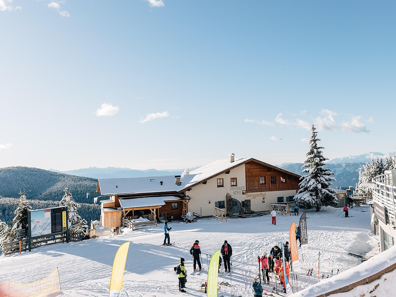 Direkt an der Bergstation der Bergbahn Meran 2000 und der Umlaufbahn Falzeben. Gemütliche und urige Hüttenatmosphäre. Organisierte Hüttenabende zu jeder Jahreszeit.