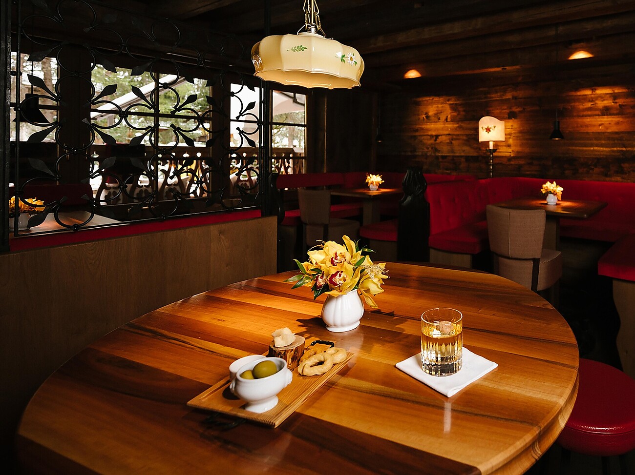 Unter den tanzenden Kronleuchtern stehen dreizehn Tische bereit, um diejenigen zu empfangen, die Lust auf einen Snack, ein schnelles Mittagessen, einen Aperitif oder ein Abendessen in festlicher Atmosphäre haben. Die Speisekarte widmet sich der italienischen Schönheit und führt durch Gerichte, die unser gastronomisches Erbe feiern.