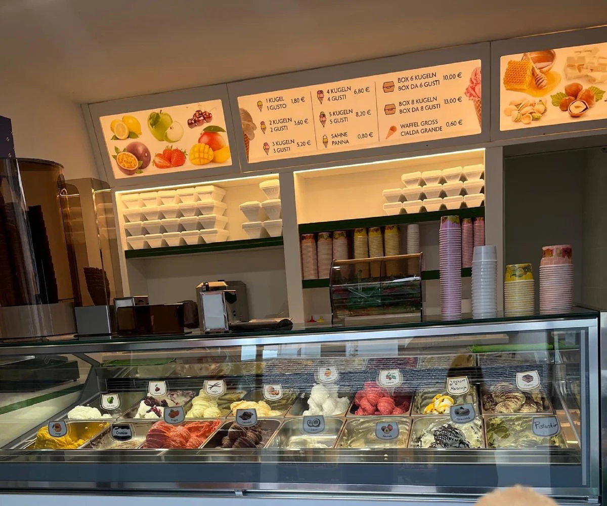 Entdecke die köstliche Vielfalt in unserer Eisdiele. Von klassischen Sorten bis zu kreativen Neukreationen, ist bei uns für jeden Geschmack etwas dabei. Wir verwenden nur die höchste Qualität von Rohstoffen. Unsere Milch - und Milchprodukte beziehen wir vom Milchhof Brixen (Brimi), Pistazien aus Sizilien und Haselnüsse aus Piemont.