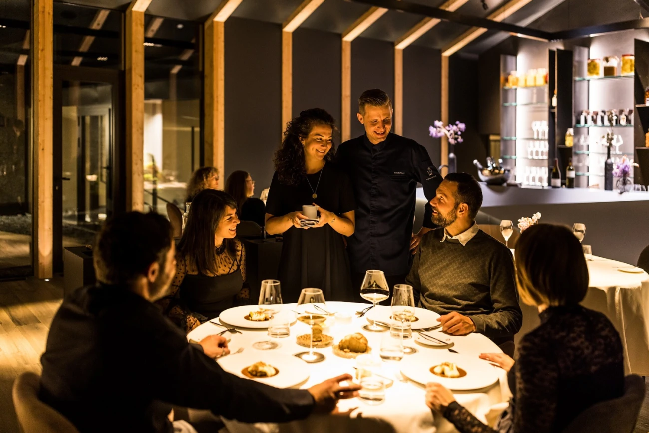 Sechs Tische. Fünf Sinne. Unzählige Aromen, Texturen und überraschende Interpretationen. Ein Ort, an dem alles zusammenkommt, was Gastgeber Marc und Mara lieben. Exzellente Produkte der Region, erstklassige Weine und eine erfrischende, moderne Küche. Der Gedanke ist Glocal - lokal und doch von Welt. Im mehrgängigen Degustationsmenü findet das Wagyu Rind aus eigener Zucht seinen Platz nebst französischen Austern und fermentiertem Vinschger Urgetreide. Eine Küche, die über den Tellerrand blickt und dabei dennoch nie die eigenen Wurzeln aus den Augen verliert.