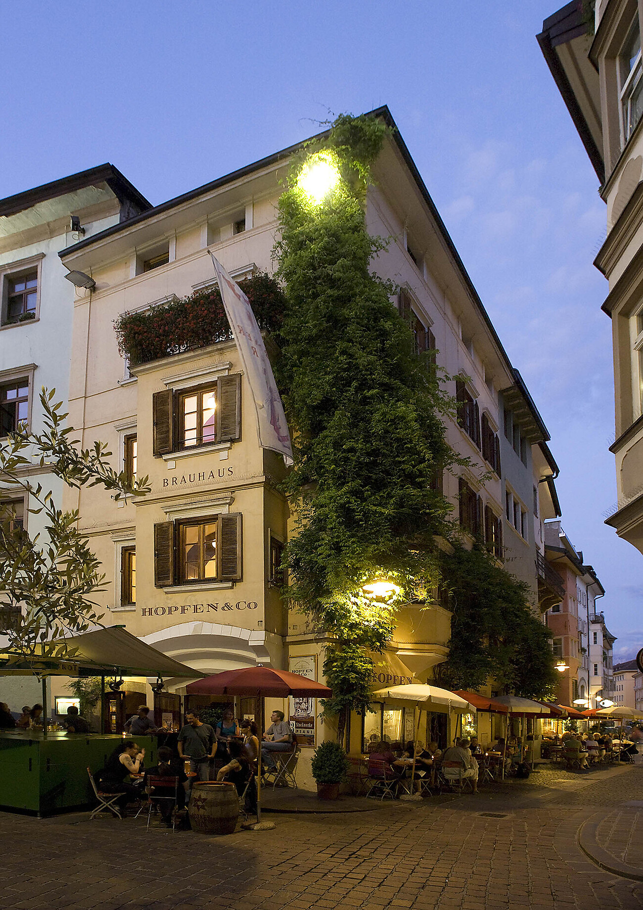 Ein Besuch in der Wirtshaus-Brauerei Hopfen & Co. ist ein Muss für jeden Besucher der Stadt Bozen. Einst Eckturm der Stadtmauer mit den alten Kerkern, ist das Gebäude heute eine Gaststätte mit Museumscharakter, wo im mittelalterlichen Keller das frische und schmackhafte “Bozner Bier” gebraut und gelagert wird, um sodann an den Tischen der charakteristischen “Stuben” des 3-Etagen Restaurants serviert zu werden. Ein Ort der kulinarischen Genüsse mit appetitlichen Gerichten aus der lokalen Küche und sorgfältig ausgewählten Produkten der Marke Südtirol wie Speck, Wurst und Käse. Knödel, Spätzle und Teigtaschen werden von unserer Küchenmannschaft von Hand zubereitet.