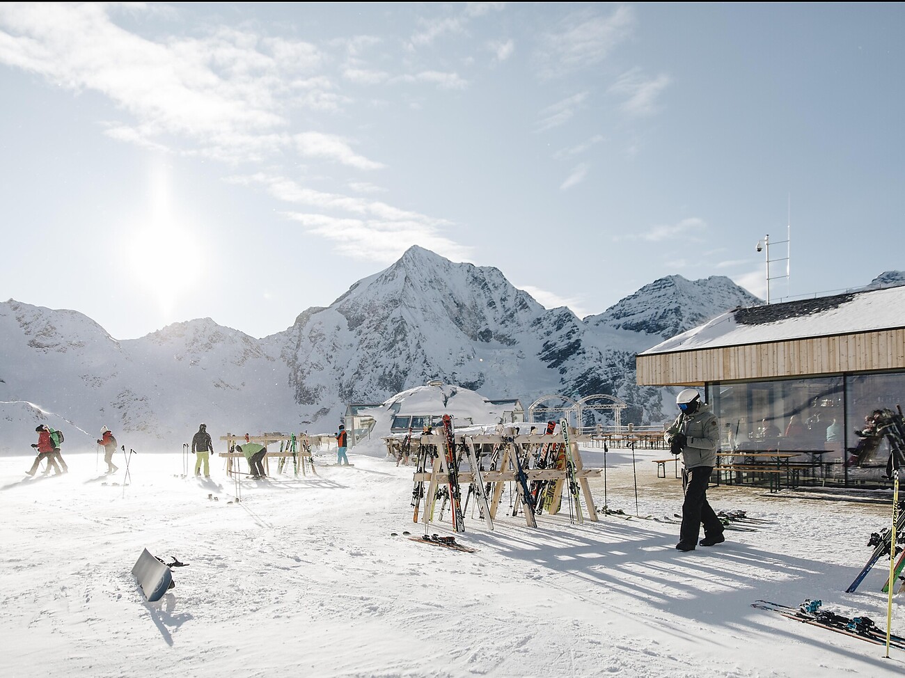 In der Yak-Bar wartet die heiße Schokolade oder der Kaffee und im höchstgelegenen Iglu Europas das kühle Bier, der Willi danach und tolle Après-Ski-Musik. Genießen Sie von der Sonnenterrasse den einmaligen Blick auf die Ortlergruppe.