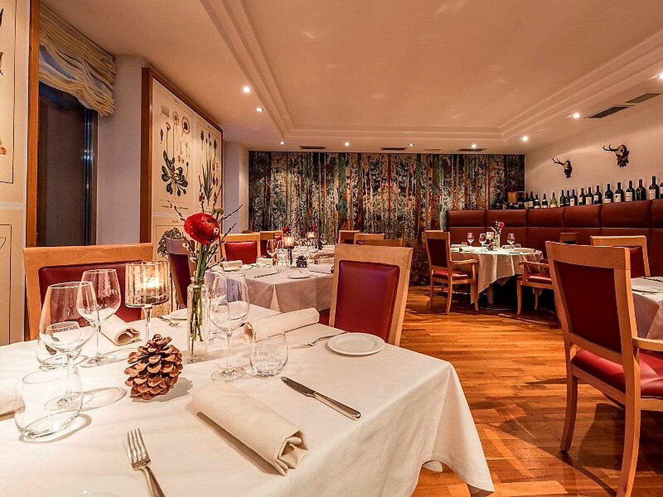 Naturküche mit einheimischen Qualitätsprodukten und italienischen Spezialitäten. 4 Restaurants: Edel rustikale „Stube“mit Ofen und Holzgetäfel. Restaurant „Bergblick“ & „Orangerie“, à la carte Restaurant Reh:angl, Panorama Terrasse mit Ausblick auf die gigantische Bergkulisse, Kaminzimmer & Bar. Unser Weinkeller, ein Besuch wert! Über 230 ausgewählte Spitzenweine stehen zu Ihrer Wahl und lassen keine Wünsche offen. Abends Kinderbetreuung