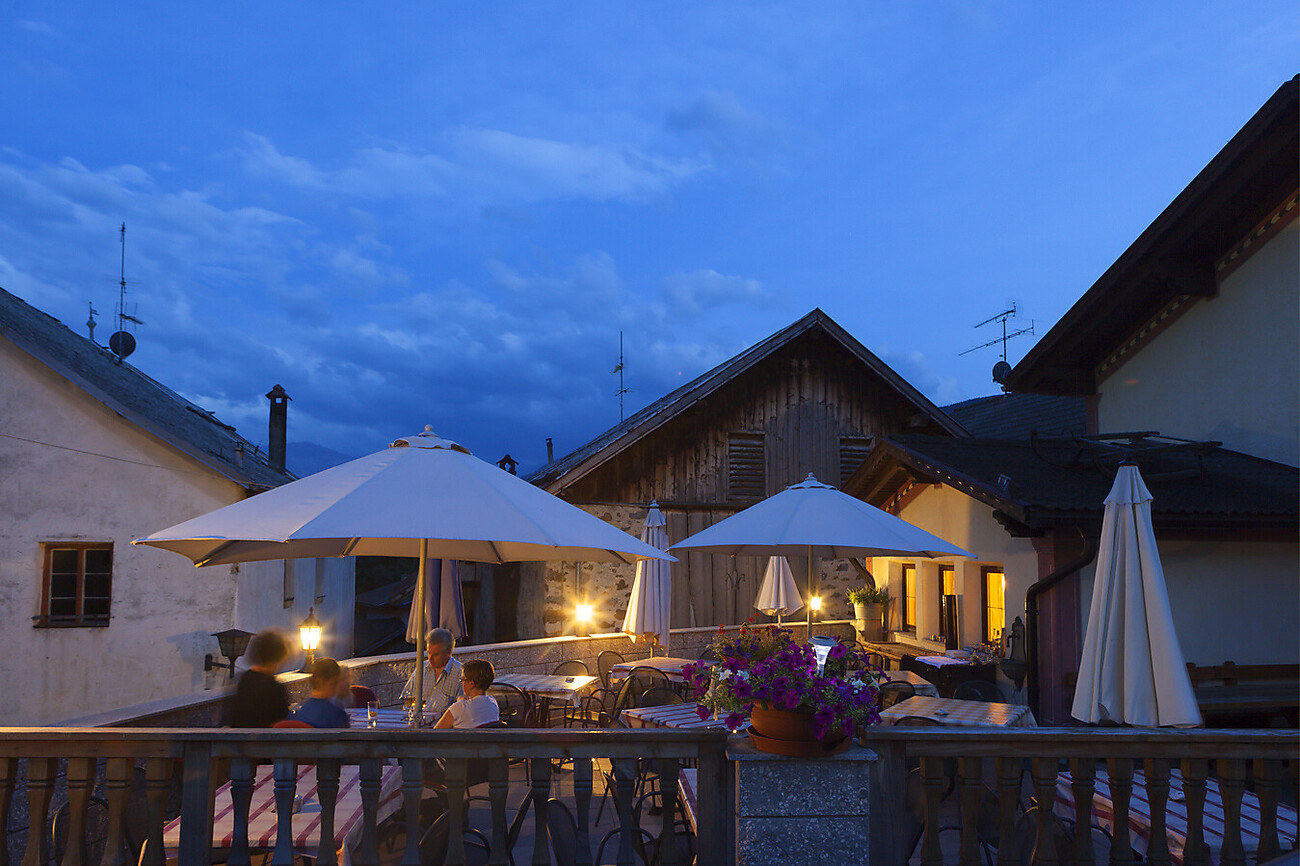 Entspannen Sie auf unserer Sonnenterasse bei Apfelstrudel und Cappuccino und vielen hausgemachten Säften.