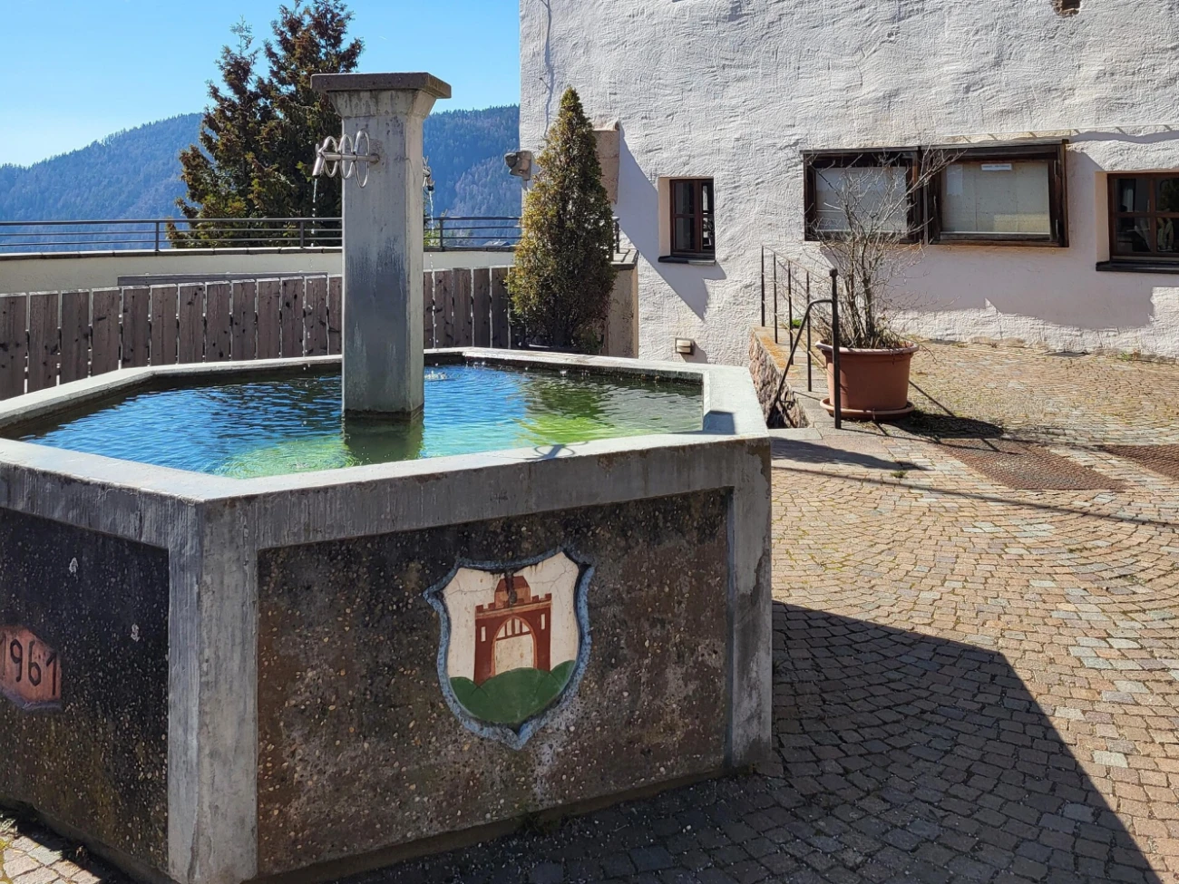 Achtsam am Berg - Brunnen am Rathaus in Jenesien