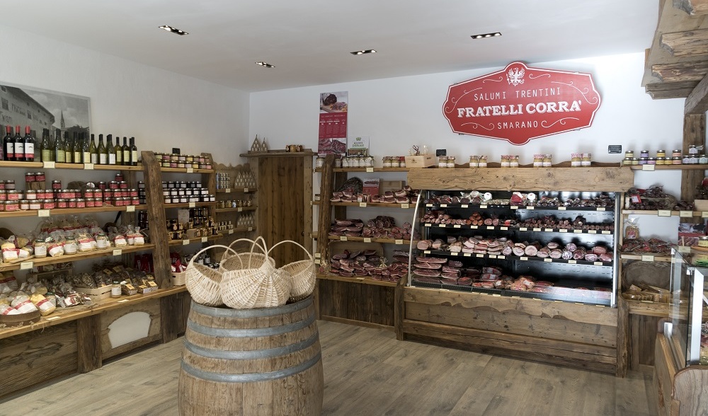 Neben verschiedenen Aufstrichen, Kräuter- und Gewürzmischungen, getrockneten Steinpilzen und vielem mehr sind es vor allem die exzellenten Fleischwaren, die eure Feinschmecker-Herzen höherschlagen lassen werden. Aus sorgfältig ausgewähltem Schweine-, Rind- und Wildfleisch stellen die Brüder Corrà eine ganze Palette an köstlichen Spezialitäten her: Wählt zwischen Salami, Bresaola, Schinken, verschiedenen Würsten wie Frankfurter Würstchen, Weißwurst oder Servelade, köstlichem Trentiner Speck und vielem mehr! Lasst euch außerdem vom Sortiment an erlesenen Weinen aus der Region inspirieren: Ein guter Tropfen sollte beim Genuss der Köstlichkeiten keinesfalls fehlen!