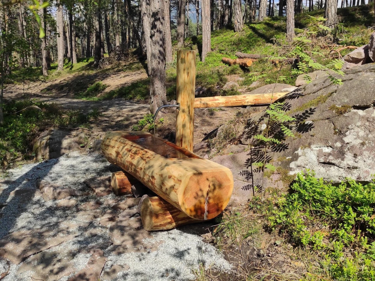 Dieser Trinkwasserbrunnen befindet sich im Laranzer Wald in Telfen, zwischen Kastelruth und Seis am Schlern.