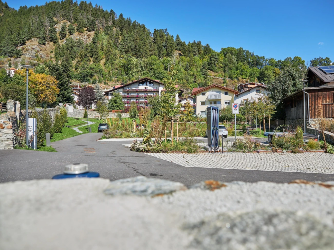 Die Ladestation mit 2 Parkplätzen befindet sich bei der Pfarrkirche Burgeis.