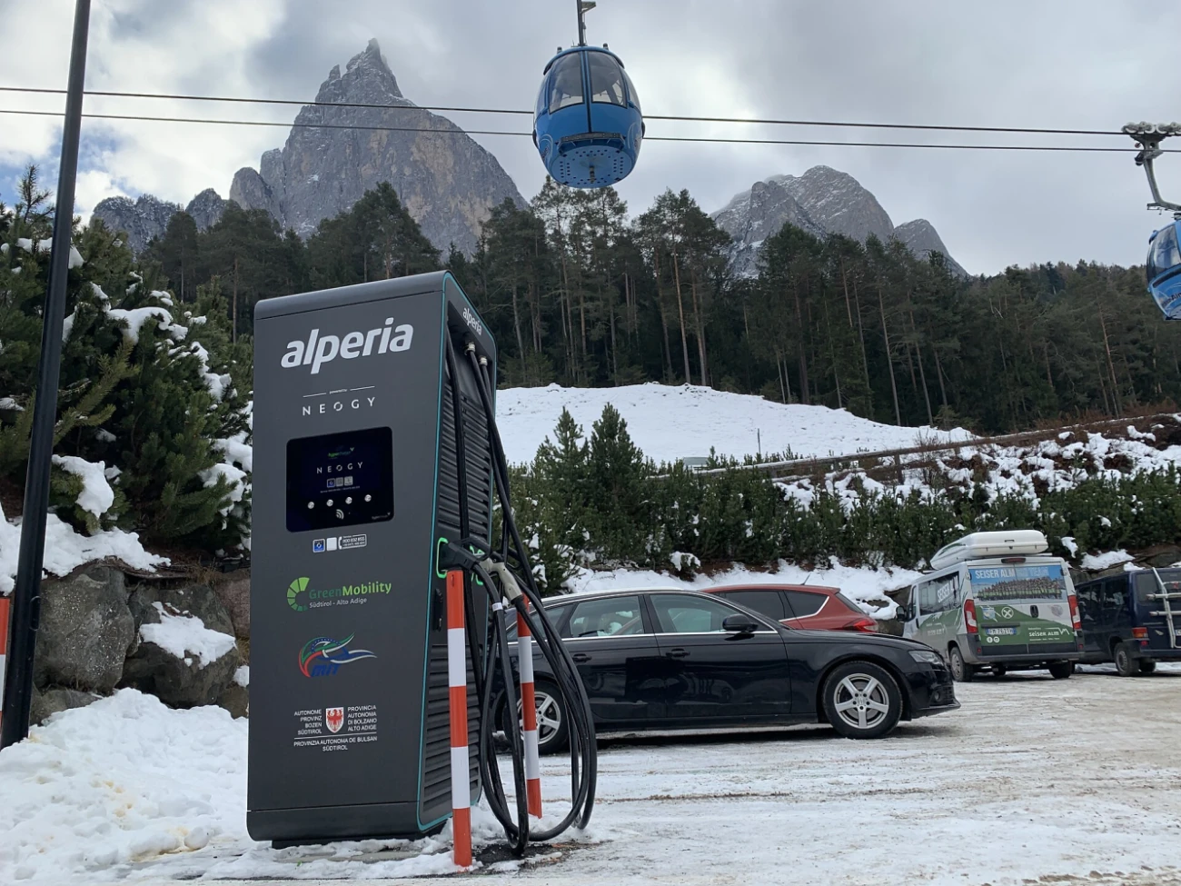 An der Talstation der Seiser Alm Bahn stehen drei Ladestationen für Elektro-Fahrzeuge zur Verfügung. Eine davon befindet sich im Freien und die beiden anderen in der Parkgarage (P1 und P2). Es handelt sich dabei um Hypercharger, bei denen ein E-Fahrzeug mit einer Leistung von 100 kW bis 150 kW in rund einer halben Stunde aufgeladen werden kann. Mit der App "Neogy eMobility" können sie alle öffentlichen E-Ladestationen in Ihrer Nähe sehen, diese reservieren, den Ladevorgang starten und bezahlen.