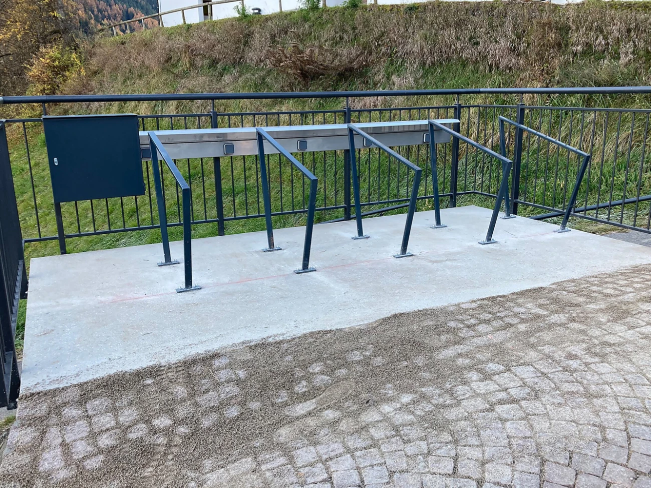Die E-Bike Ladestation befindet sich am Rande des Buswendeplatzes in St. Peter. Es handelt sich um einen Fahrradständer mit angebrachten Steckdosen für 5 E-Bikes. Wichtig! Für das Aufladen an den Ladestationen, müssen Sie das geeignete Netzteil zum Laden Ihres Bikes im Gepäck haben. Empfehlenswert wäre auch die Mitnahme eines Fahrradschlosses, zum Abschließen Ihres E-Bikes während des Ladevorgangs.