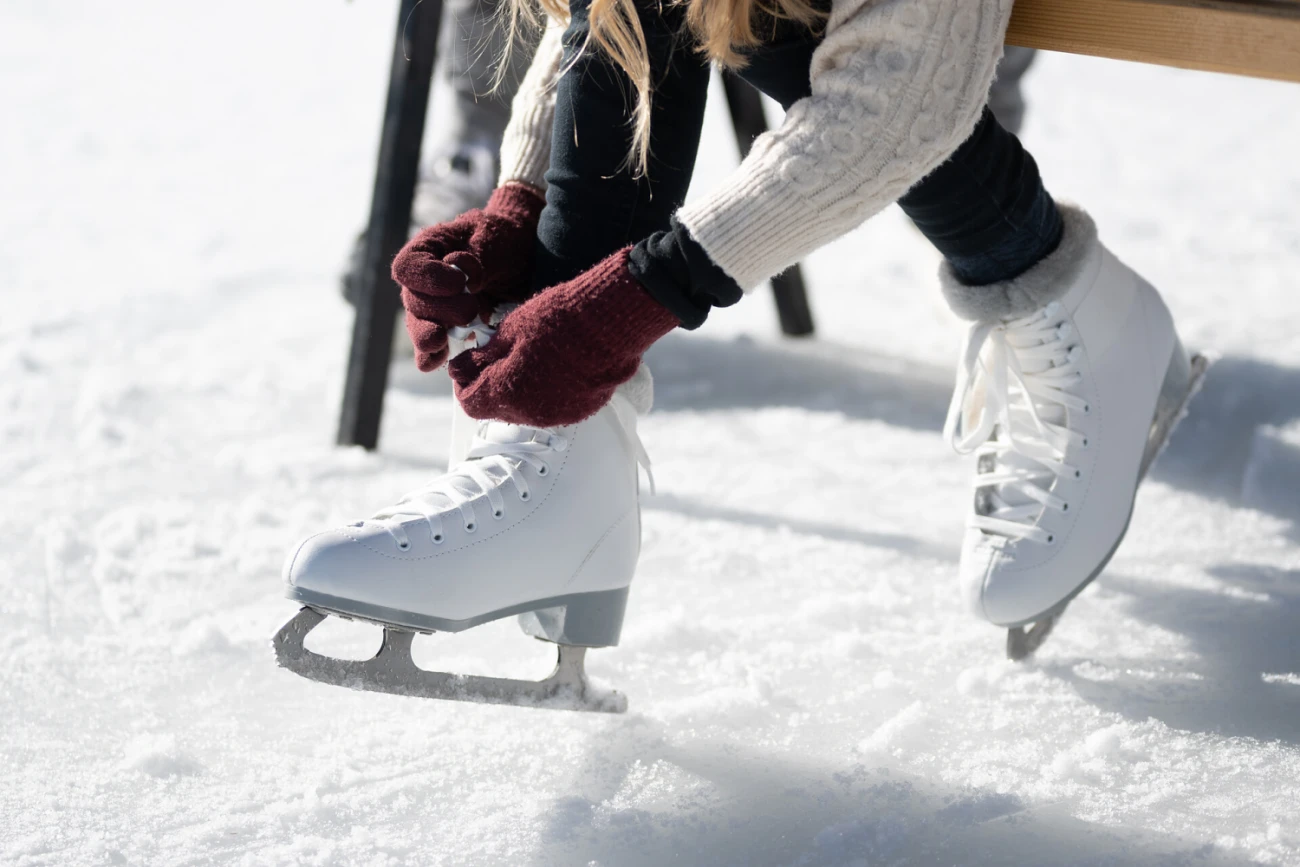 Schlittschuhe und Curling-Steine können beim See ausgeliehen werden.