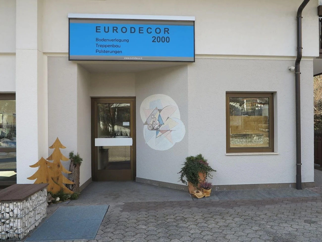 Produkte im Verkauf: Bodenverlegung, Polsterungen, Möbelstoffe, Treppenbau.