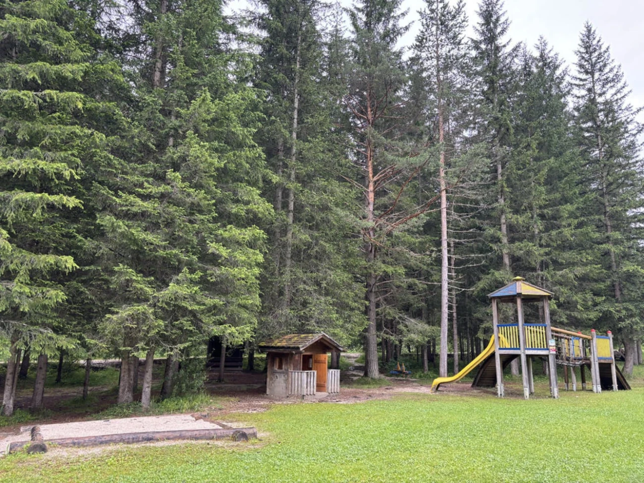 Der Spielplatz befindet sich am Wanderweg, der von La Villa nach Corvara führt, entlang des Flusses in der Nähe der Gran Risa.