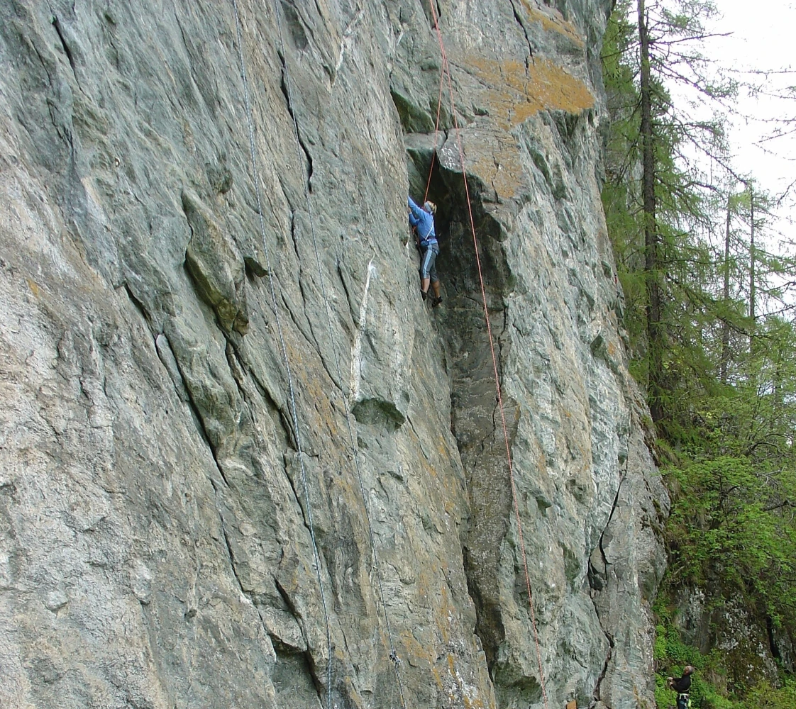 Der so genannte Loathna-Kofel bei St.Lorenzen war - so hat man es herausgefunden - bereits in der Eisenzeit bewohnt. Damals haben Bewohner ihren "Müll" über die Wand hinab geworfen. Heute tummeln sich in den insgesamt 26 zum Teil recht anspruchsvollen Routen in leicht überhängendem Granitgneis trainierte und trainierende Kletterer.