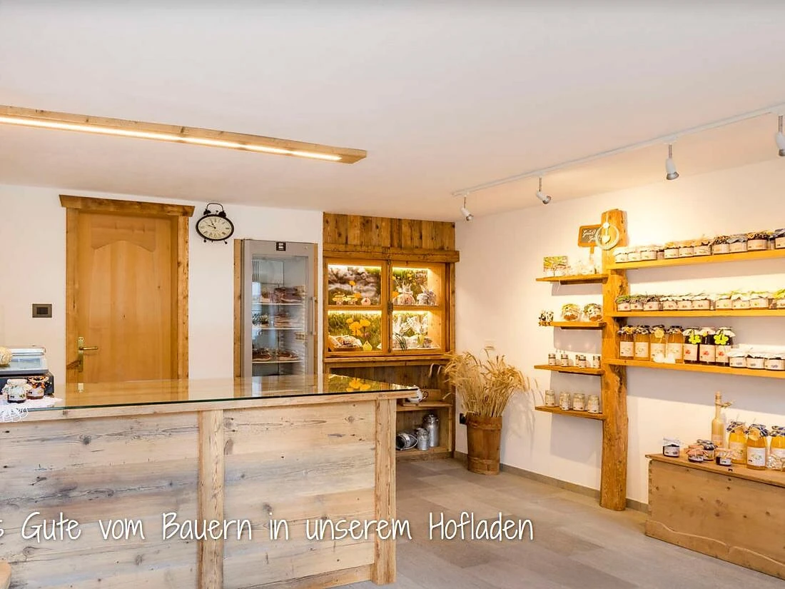 Hofladen in Kematen in Taufers: Fruchtaufstriche, Kaminwurzen, Speck und Eier.