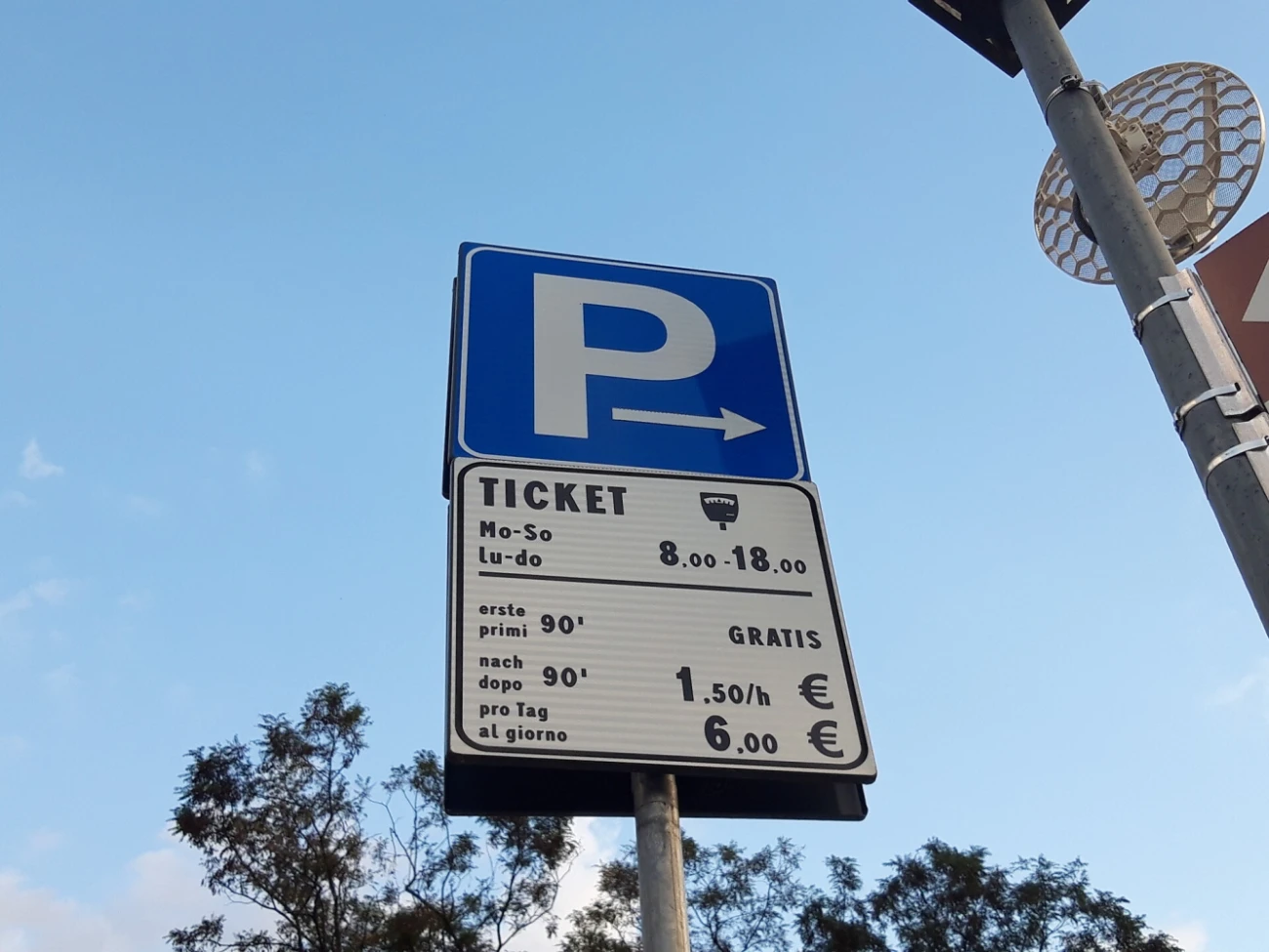 Das Parken für die ersten 90 Minuten ist kostenlos! (Achtung: Parkuhr stellen!)