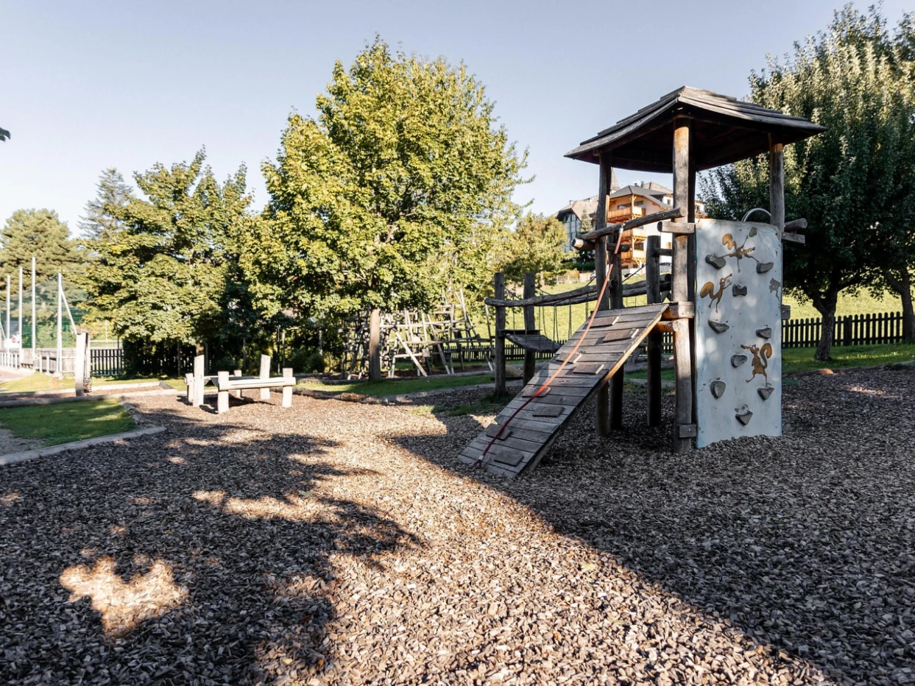 Der Spielplatz befindet sich an der Hauptstraße, oberhalb des Busbahnhofes in Seis am Schlern.
