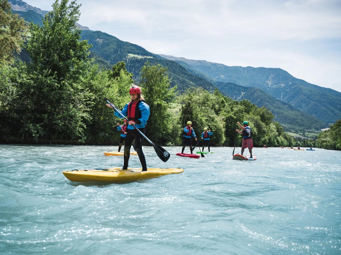 Der Fluss bringt Action, Wellen und unterschiedliche Strömungen, wir steigen auf unsere SUPs und bewältigen die Etsch. Spaß und nasse Momente sind garantiert.